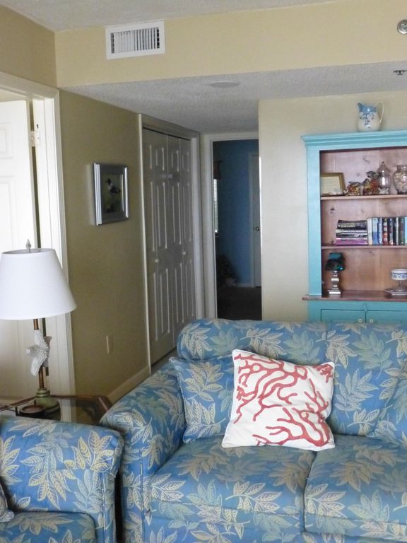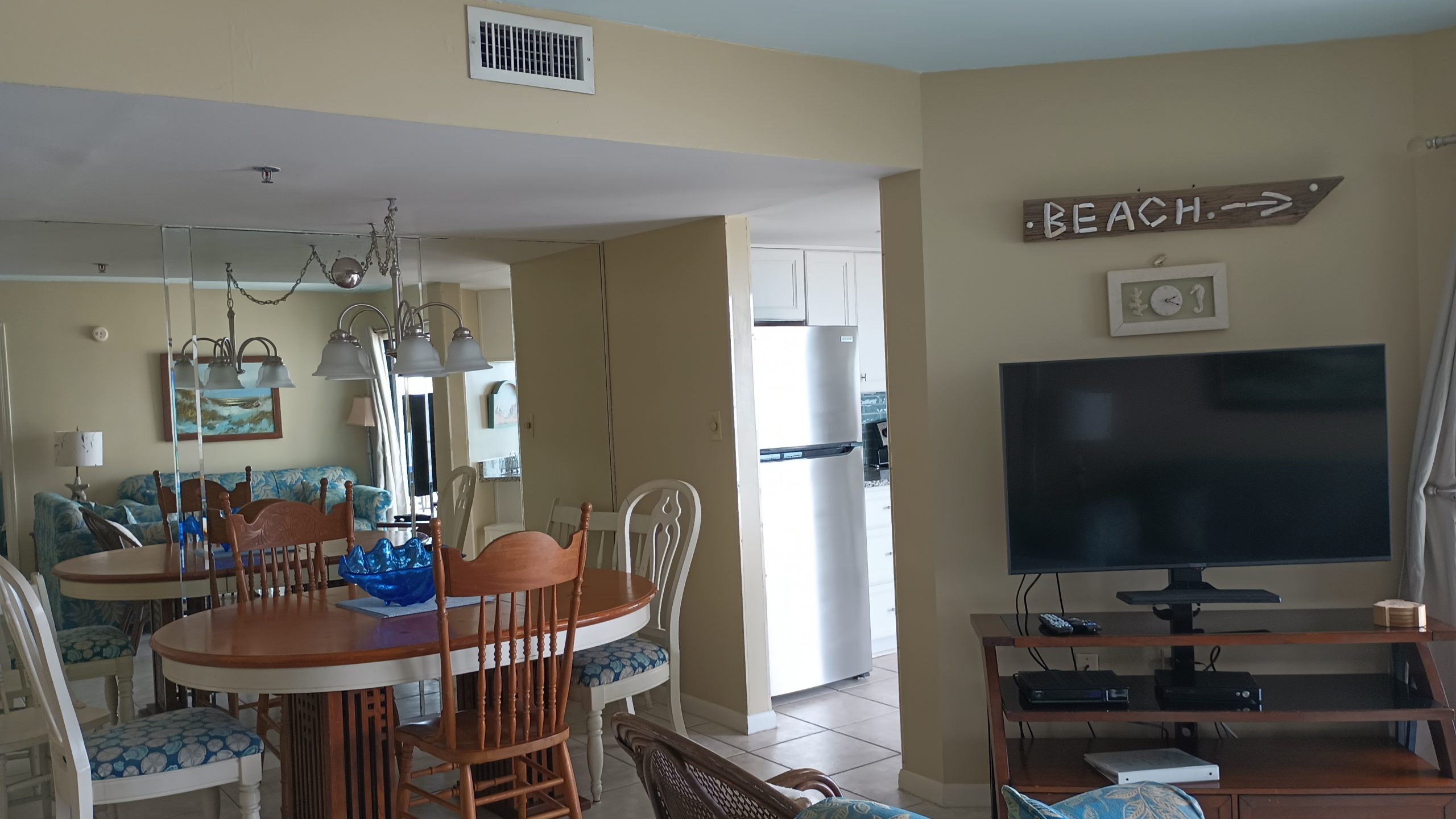 Updated unit, nicely decorated and equipped. New Plank flooring in all bedrooms. The layout has a nice cottage feel when you walk in the door. Enjoy ocean views from the primary bedroom, living room and kitchen each with large sliding glass doors onto the spacious balcony.