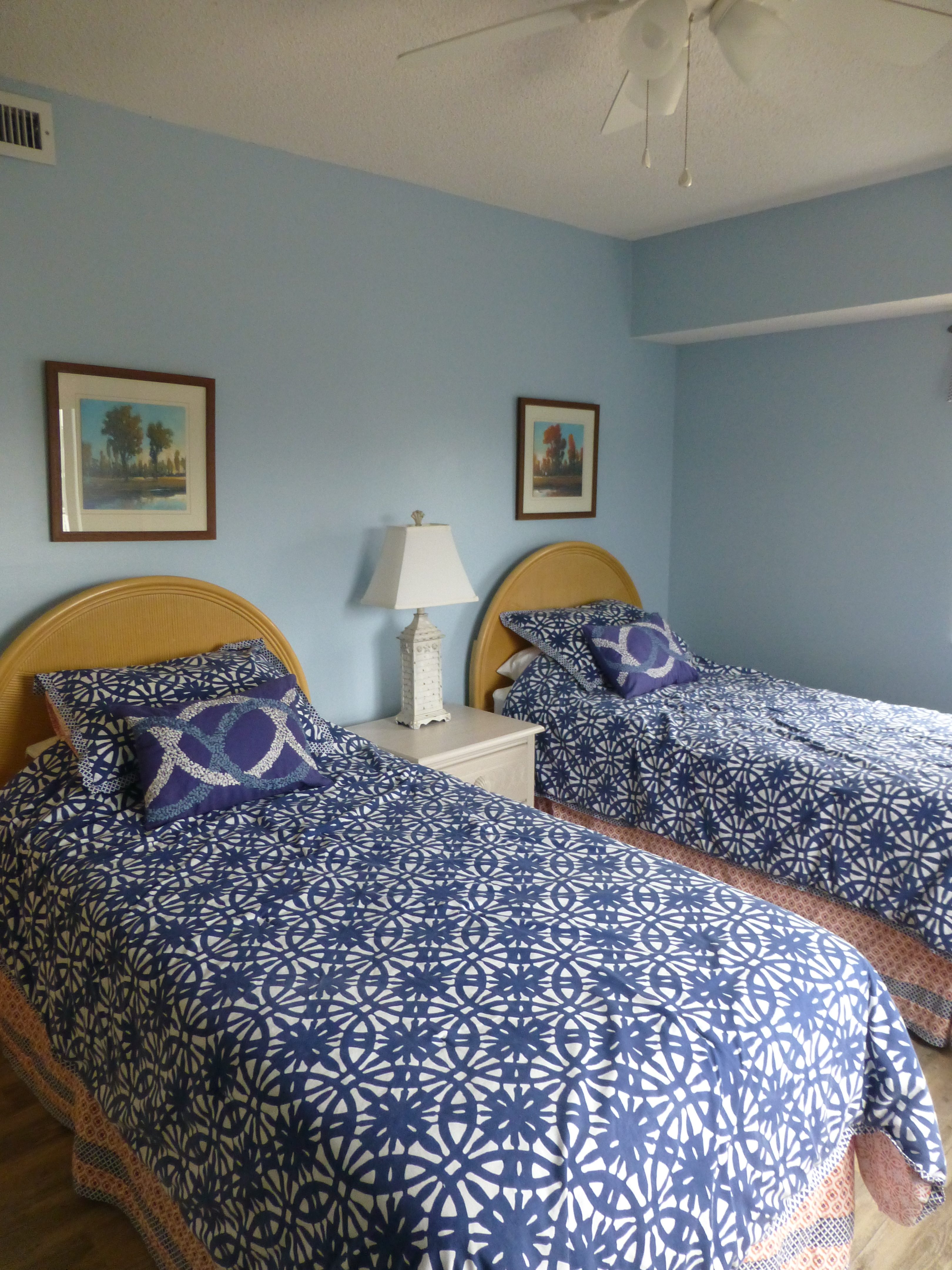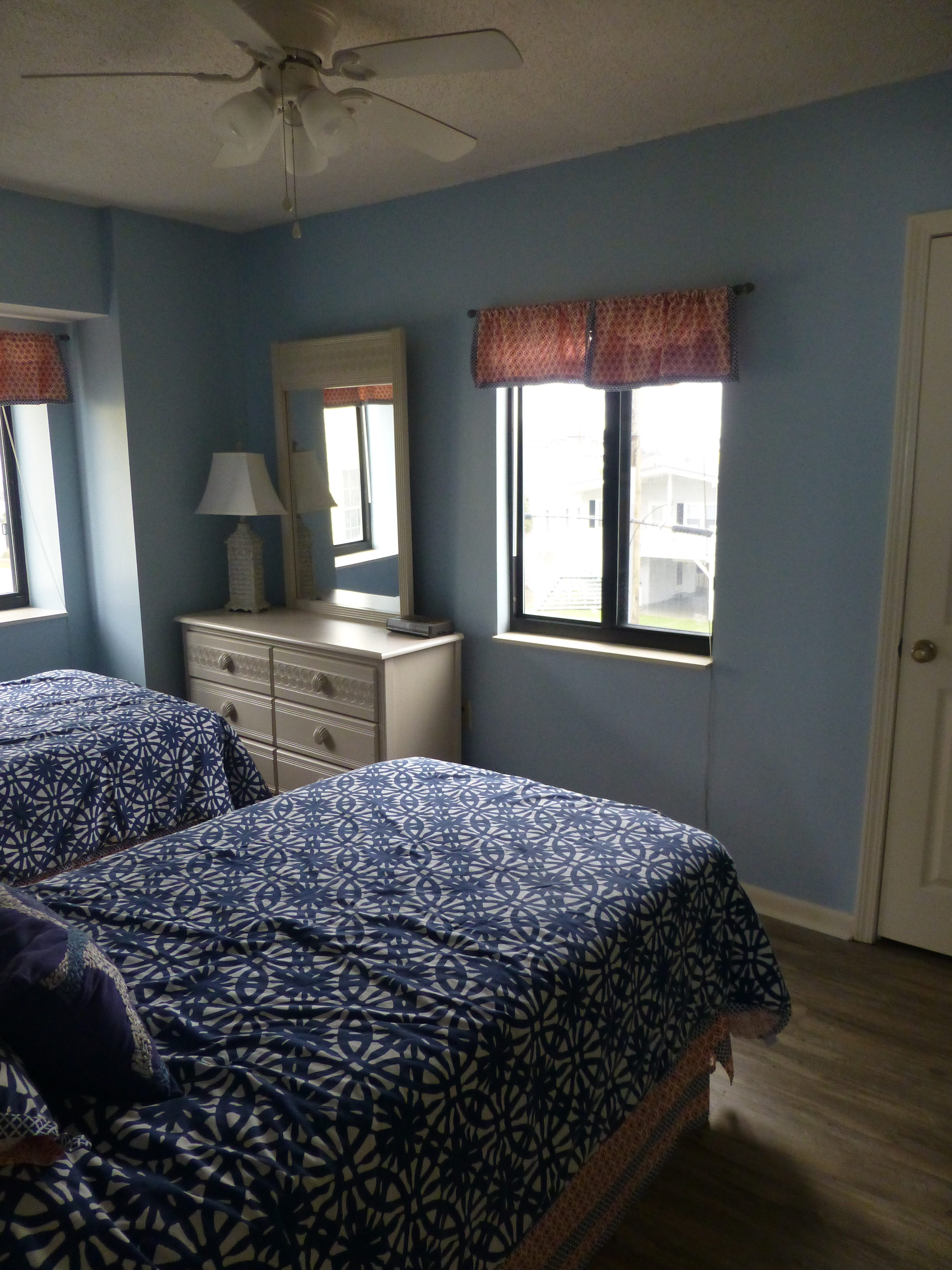 For the other 2 bedrooms, one has 2 twin beds and the other a queen size bed. Ceiling fans in both rooms. Wood look Vinyl plank flooring.