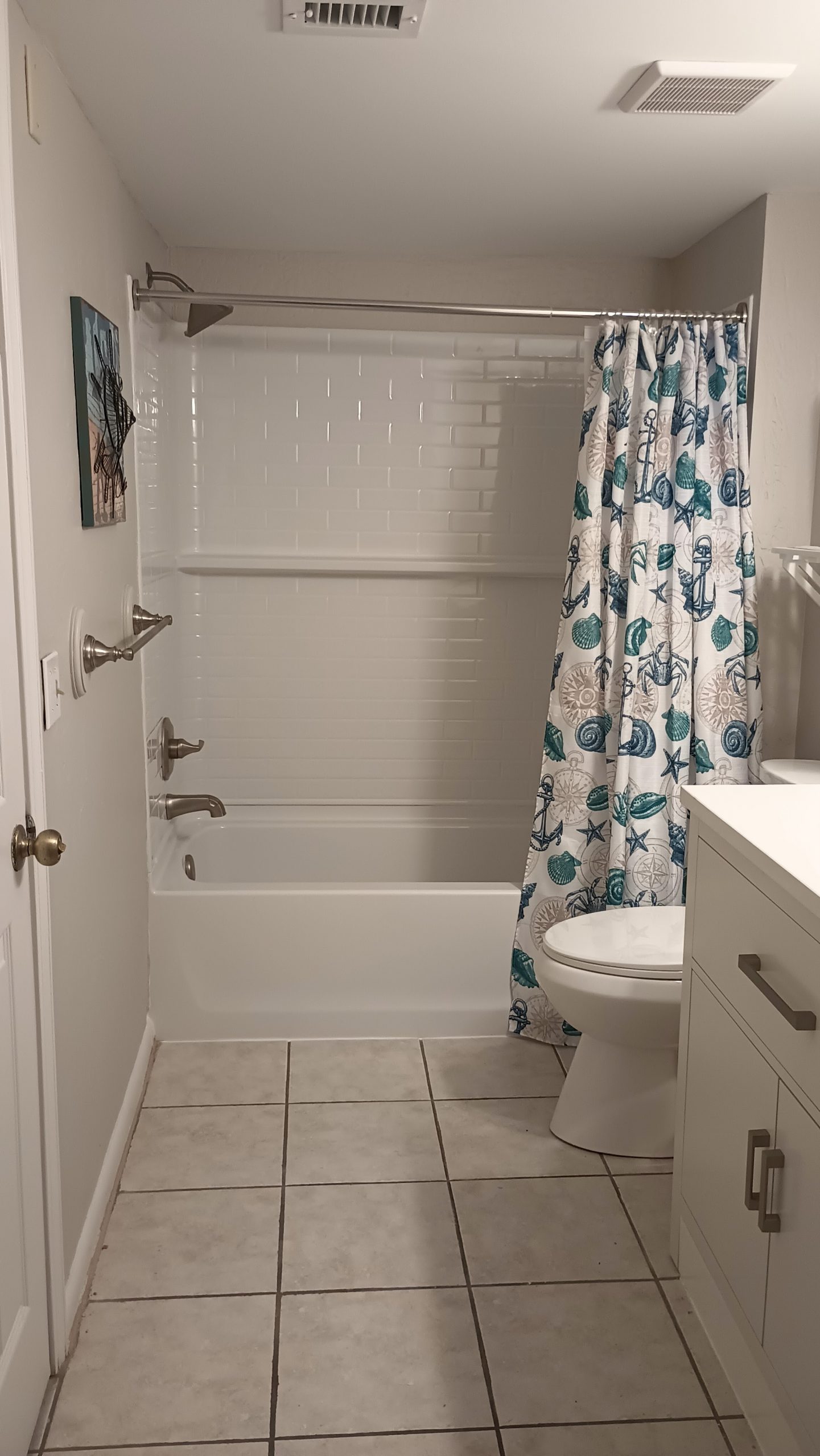 Large second bathroom, connects directly to twin bedroom and hall access also.